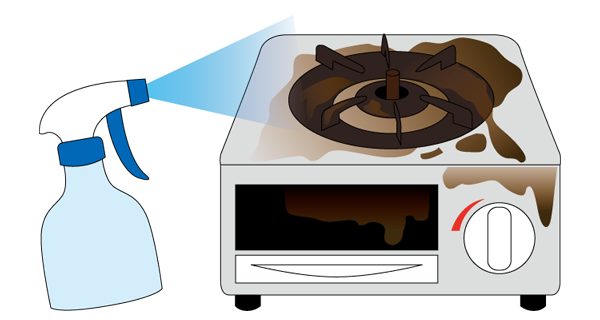 | 原液~10倍 | 冷蔵庫、電子レンジ、オーブン、トースター、ポット、炊飯器などの家電製品。換気扇、流し台、調理器具、食器・ガラス・陶器類、浴槽、トイレなど |